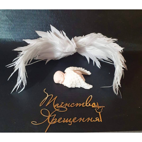 Набір прикрас на хрещення. Фігурка Немовля з крилами. Вафельні крила. Топер зеркальний