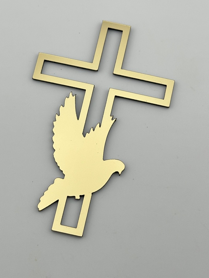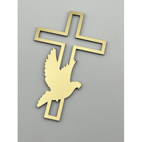 Оригінальний топер у формі хрестика з дзеркального пластику золотого кольору — символічна прикраса для святкового торта.